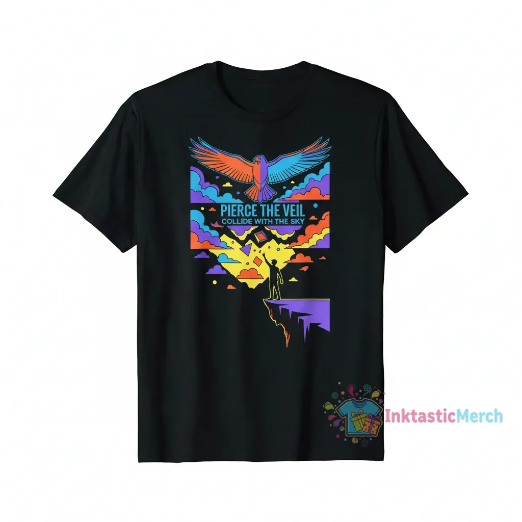 Show your love for Pierce the Veil with this awesome Collide with the Sky album merch t-shirt from InktasticMerch. Crafted from premium, soft cotton and heavyweight fabric, this tee offers superior comfort and durability for all-day wear. It’s the perfect statement piece for dedicated fans, letting you connect with the music and the band’s amazing energy.