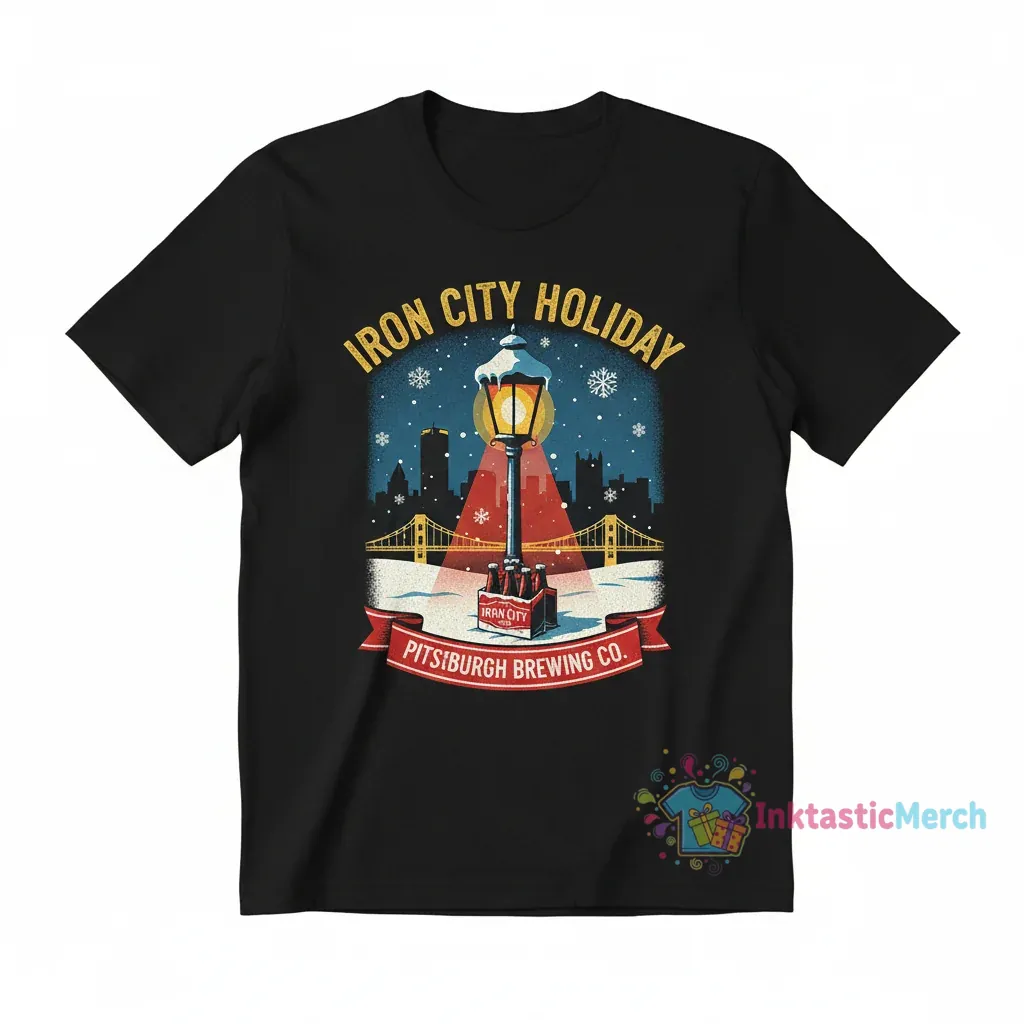 Celebrate the festive season with the Pittsburgh Brewing Iron City Holiday T-Shirt, a perfect blend of iconic Pittsburgh heritage and holiday cheer. This comfortable and stylish tee from InktasticMerch is ideal for fans of Iron City beer and anyone looking to show their Pittsburgh pride during the holidays.