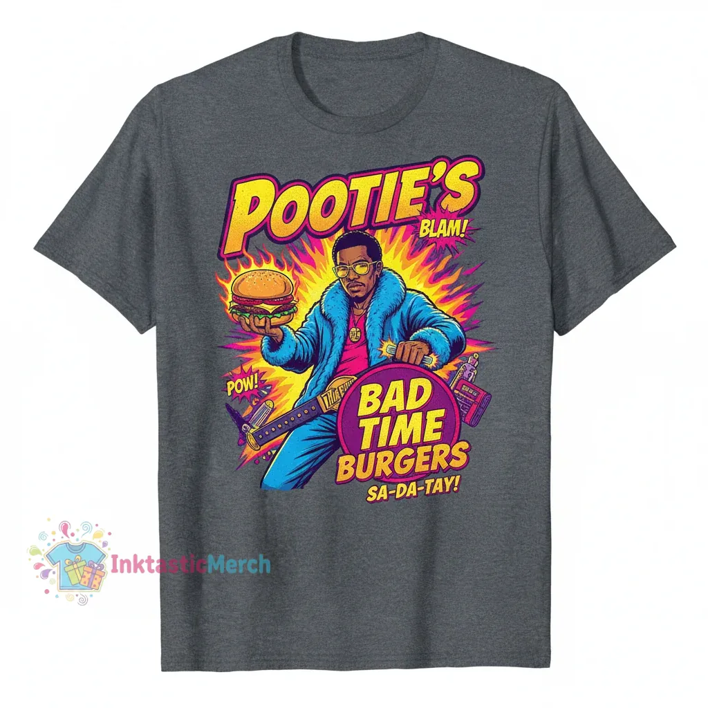Discover the ultimate Pootie’s Bad Time Burgers T-Shirt for men, inspired by the iconic Pootie Tang. Crafted for durability and a premium feel by InktasticMerch, this heavyweight tee in Sport Grey offers exceptional comfort and lasting style, making it an essential addition to any pop culture enthusiast’s wardrobe.