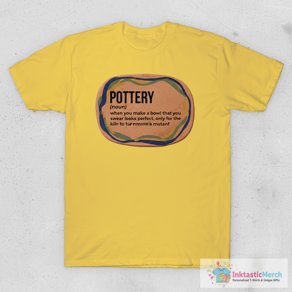 The [post_title] T-Shirt is your go-to choice for humor and style. Designed for pottery enthusiasts and casual fashion lovers alike, this T-shirt brings a playful touch to your wardrobe. With its clever definition design, you’re sure to turn heads and start conversations wherever you go.