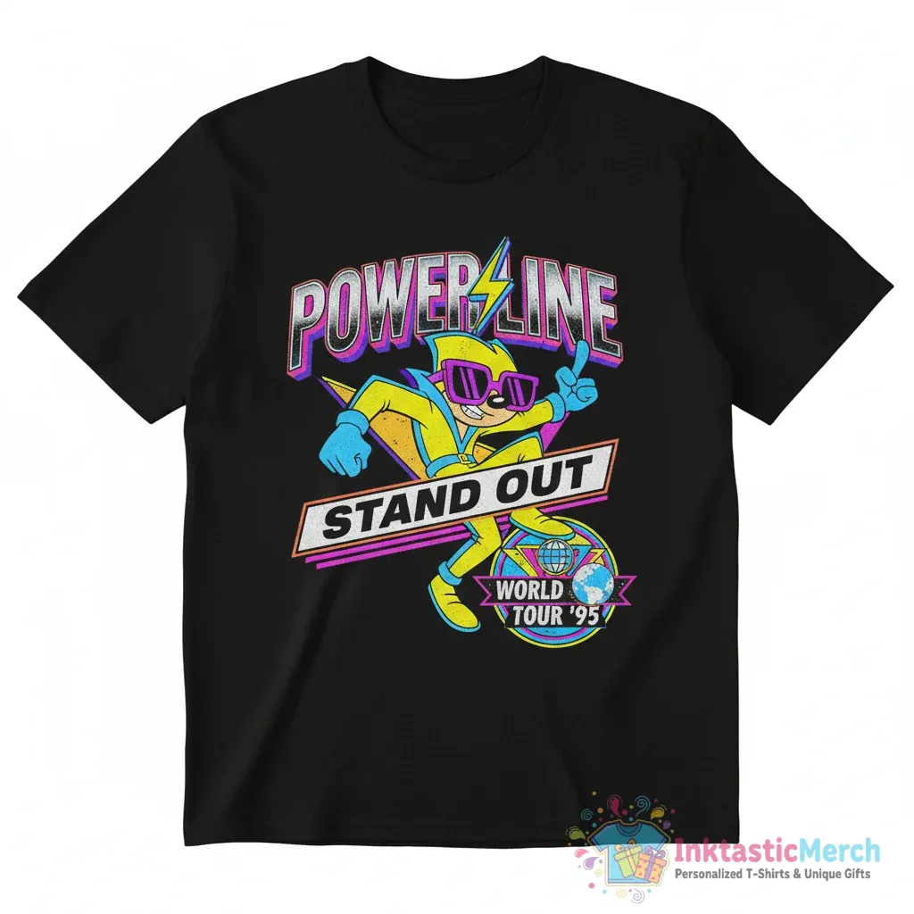 Make a statement with the Powerline Stand Out World Tour vintage cartoon shirt from InktasticMerch. Crafted for comfort and style with premium, ultra-soft fabric, this shirt boasts a vibrant, high-quality print that stays sharp wash after wash. Its classic unisex fit and unique vintage cartoon artwork make it the ideal blend of comfort, durability, and distinctive style for expressing your love for timeless animation.