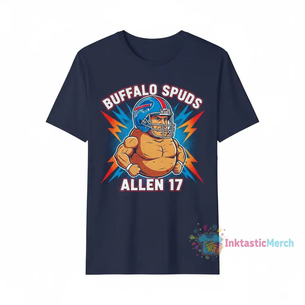 Show your unwavering support for the Buffalo Bills and quarterback Josh Allen with this premium Buffalo Potato T-shirt, a must-have for any dedicated fan. This officially licensed fan apparel combines iconic imagery with superior comfort and lasting quality, making it the perfect addition to your game-day wardrobe or casual wear collection. Celebrate your favorite player and team in style with this unique and eye-catching design.