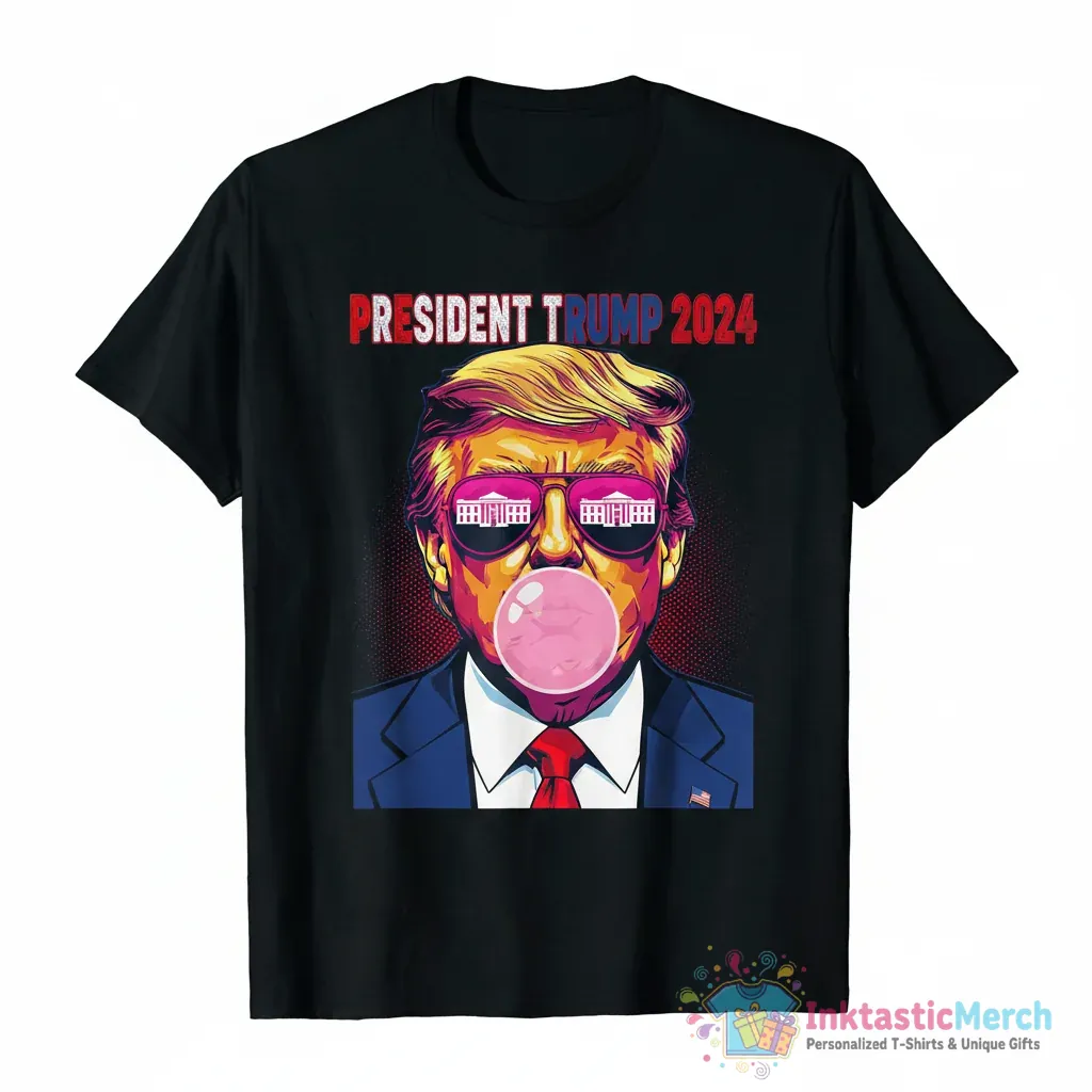 - Unique “President Trump 2024 Blowing Bubble Gum” graphic