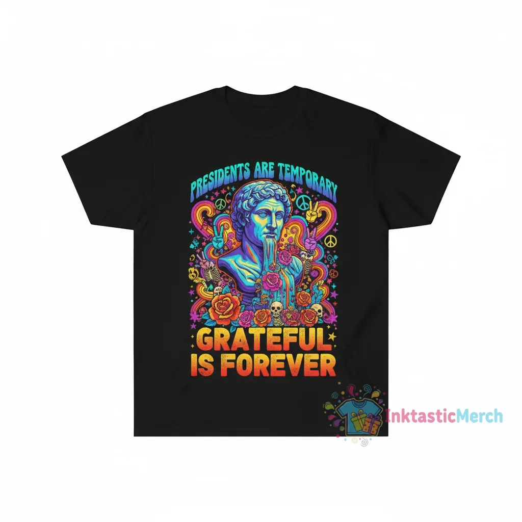 You’ll love the soft feel and effortless style of this essential t-shirt. It’s designed to be your go-to shirt, whether you’re running errands, meeting friends, or just relaxing at home. The durable fabric ensures it will remain a favorite for a long time, while the catchy “Presidents are Temporary Grateful” design is sure to spark conversations and bring smiles. Embrace a comfortable and meaningful way to express your views and values.