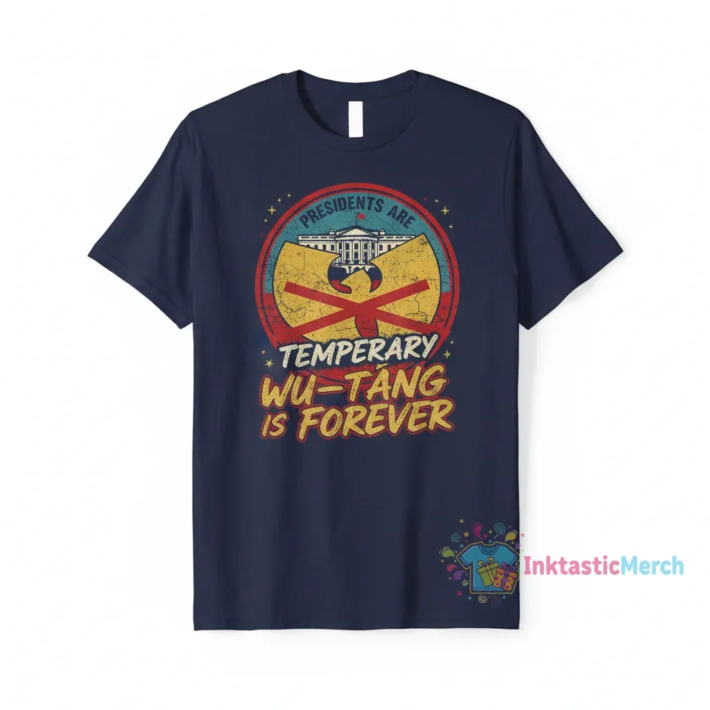 This unique ‘Presidents Are Temporary Wu-Tang Is Forever’ T-shirt is a must-have for fans of iconic hip-hop and political commentary, blending cultural longevity with a bold statement. Crafted for comfort and style, this tee serves as a conversation starter and a testament to enduring legacies. Whether you’re attending a concert, a rally, or simply expressing your views, this shirt embodies a spirit of resilience and timeless appeal. It’s more than just apparel; it’s a declaration of lasting impact.