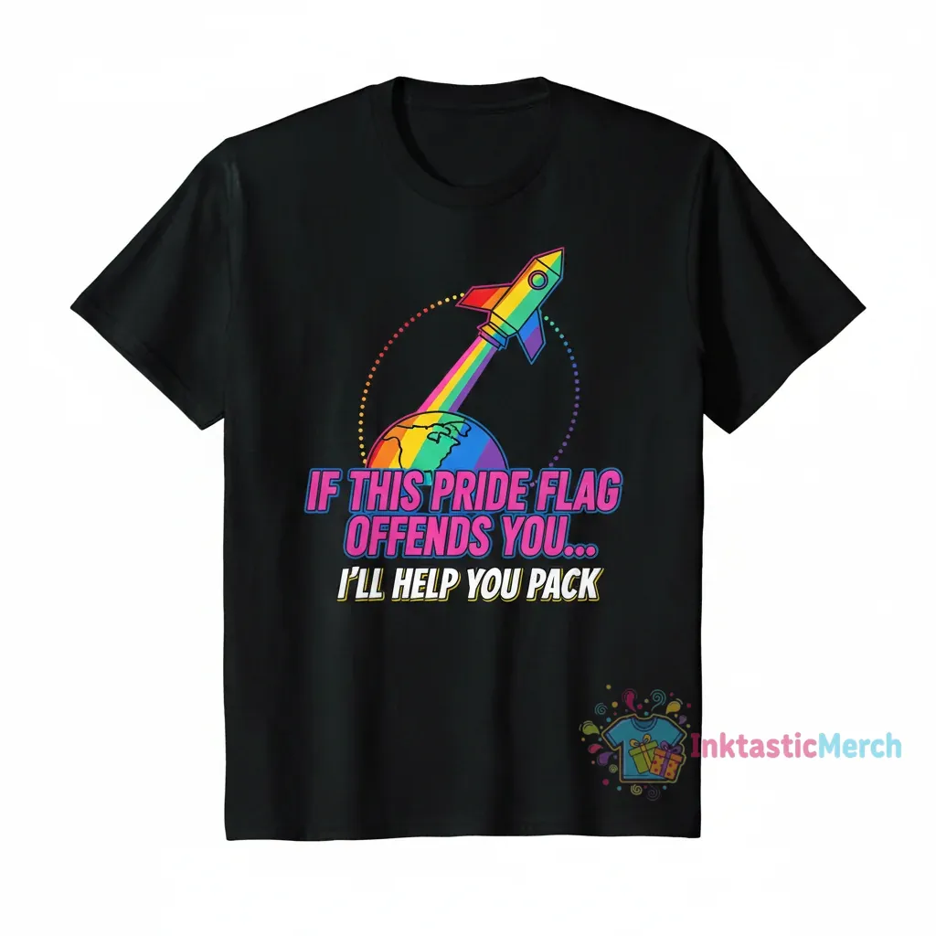 If this pride flag offends you, I’ll help you pack. This shirt is more than just fabric; it’s a statement of solidarity and acceptance. Born from a desire to celebrate diversity and love in all its forms, this design embodies the spirit of LGBTQ+ pride. It’s a gentle reminder that for some, the simple display of a rainbow is a source of joy, community, and unwavering self-expression. We believe in creating art that sparks conversation, fosters understanding, and proudly champions the right for everyone to live authentically. This piece is a wearable piece of that movement, designed for those who understand the power of visibility and the beauty of inclusivity.