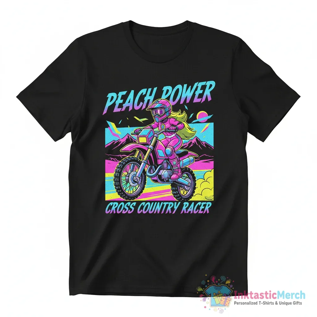 Bring your style to life with the Princess Peach with her dirt bike Cross Country shirt today!