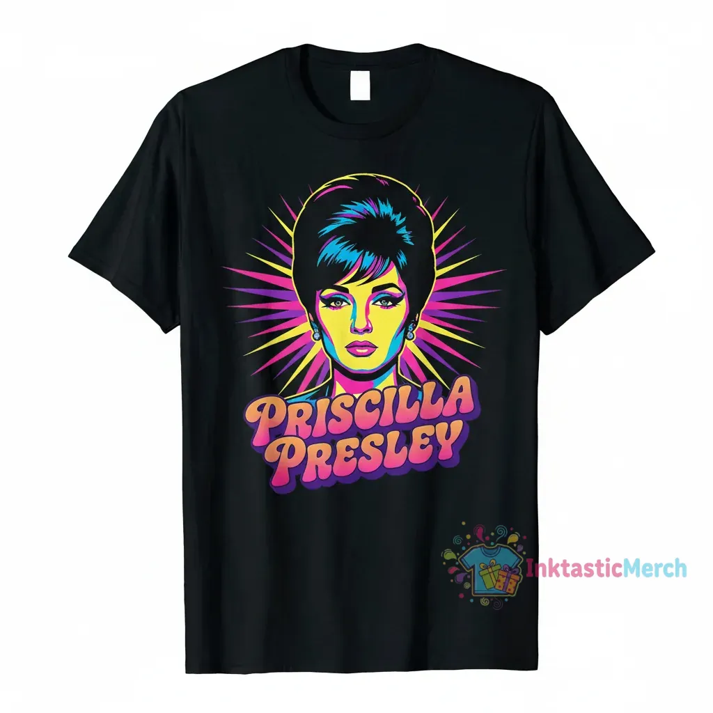 Perfect for fans of Priscilla Presley, lovers of vintage style, music enthusiasts, and anyone who appreciates unique graphic tees. This shirt is for the trend-setters, the art admirers, and those who aren’t afraid to express their personality through their clothing. If you value iconic style and artistic flair, this t-shirt is designed with you in mind.