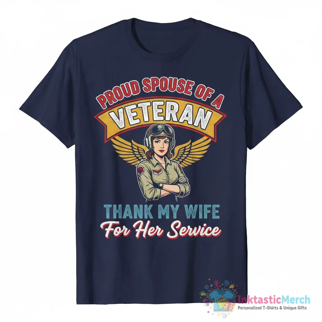 Show your pride and support with the “Proud Spouse of a Veteran” T-shirt, crafted from super soft fabric for all-day comfort. This special tee features a high-quality print that lasts, making it a heartfelt way to thank your wife for her service and honor her dedication. Discover more at inktasticmerch.com.
