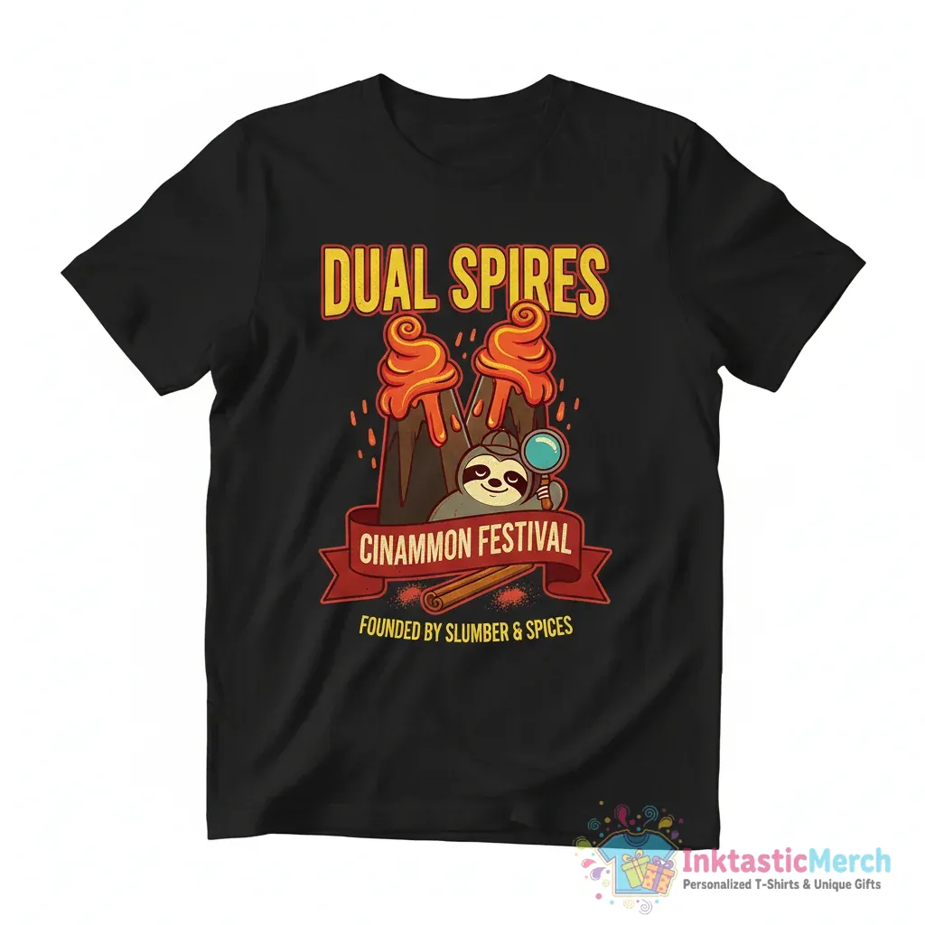 Step into the quirky world of Psych with this awesome Dual Spires Cinnamon Festival T-shirt from InktasticMerch. Made with premium quality materials, this tee celebrates an unforgettable episode and is designed for ultimate comfort with super soft fabric and a flattering unisex fit. Express your love for Shawn and Gus’s hilarious adventures effortlessly with this durable and conversation-starting shirt.