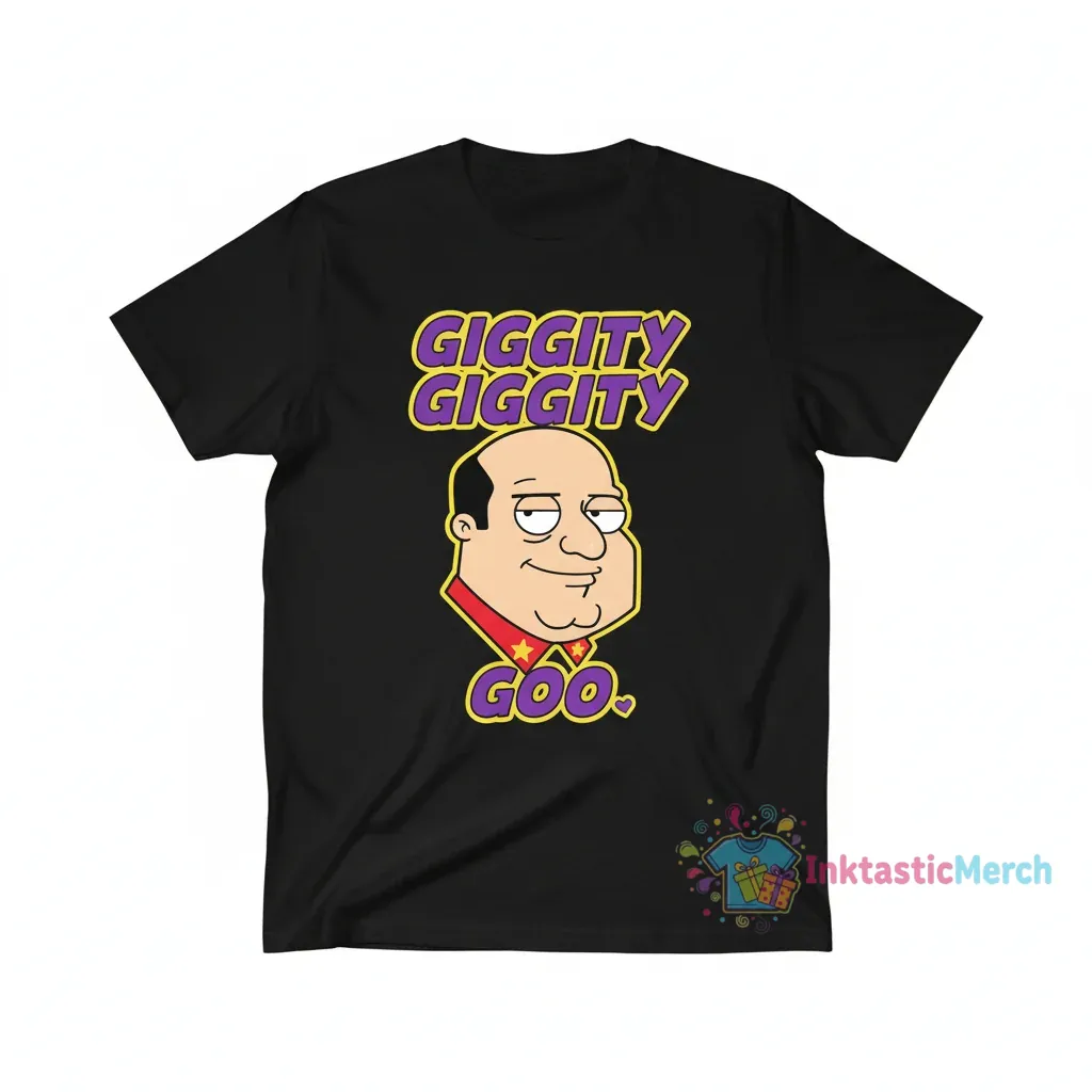 This tee captures the iconic, outrageous spirit of Glenn Quagmire from Family Guy, immortalized in the unforgettable “Giggity” meme. The design is a playful nod to the character’s signature catchphrase, rendered in a style that’s both bold and instantly recognizable. It’s more than just a shirt; it’s a statement piece that speaks to fans of the show’s edgy humor and pop culture moments. The artwork evokes a sense of mischievous fun and shared inside jokes, perfect for anyone who appreciates the show’s comedic genius and isn’t afraid to show it. Let this shirt be your canvas for expressing a personality that’s larger than life and full of laughter.