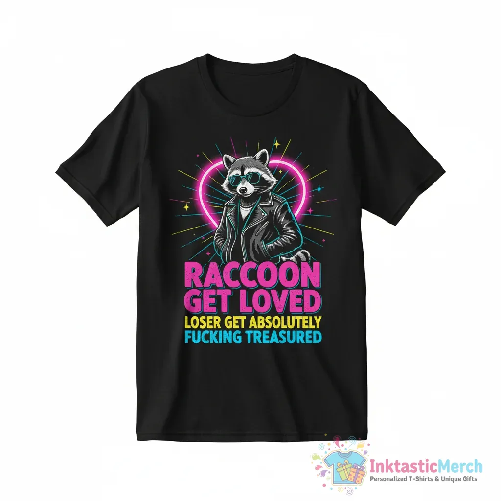 Embrace your individuality with the “Raccoon Get Loved Loser Get Absolutely Fucking Treasured” shirt, crafted from ultra-soft, premium fabric for all-day comfort and designed with durable, high-quality construction for lasting wear. This statement piece, brought to you by inktasticmerch.com, celebrates being cherished and brings undeniable personality to your wardrobe, making it a comfortable and cool conversation starter.
