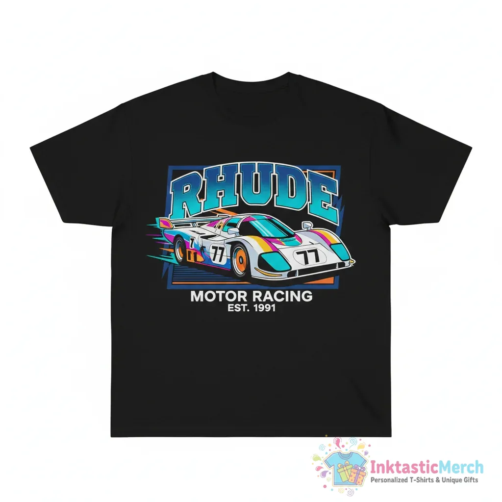 Rev up your wardrobe with the Race Car Rhude Shirt from InktasticMerch. This premium quality tee brings a unique vibe to your everyday look, blending eye-catching design with ultimate comfort. It’s more than just a shirt; it’s a statement piece that shows off your passion for automotive culture.