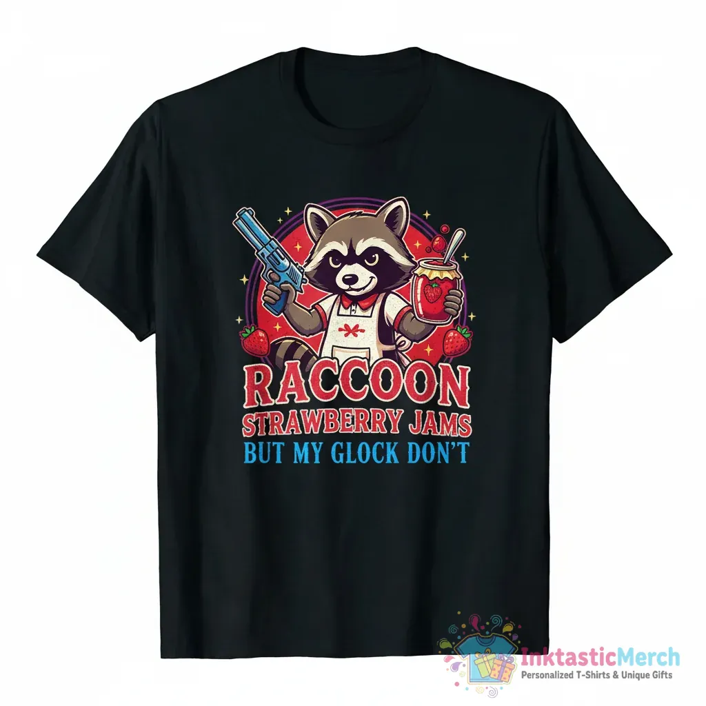 Bring your style to life with the Racoon Strawberry Jams But My Glock Don’t T-Shirt today!
