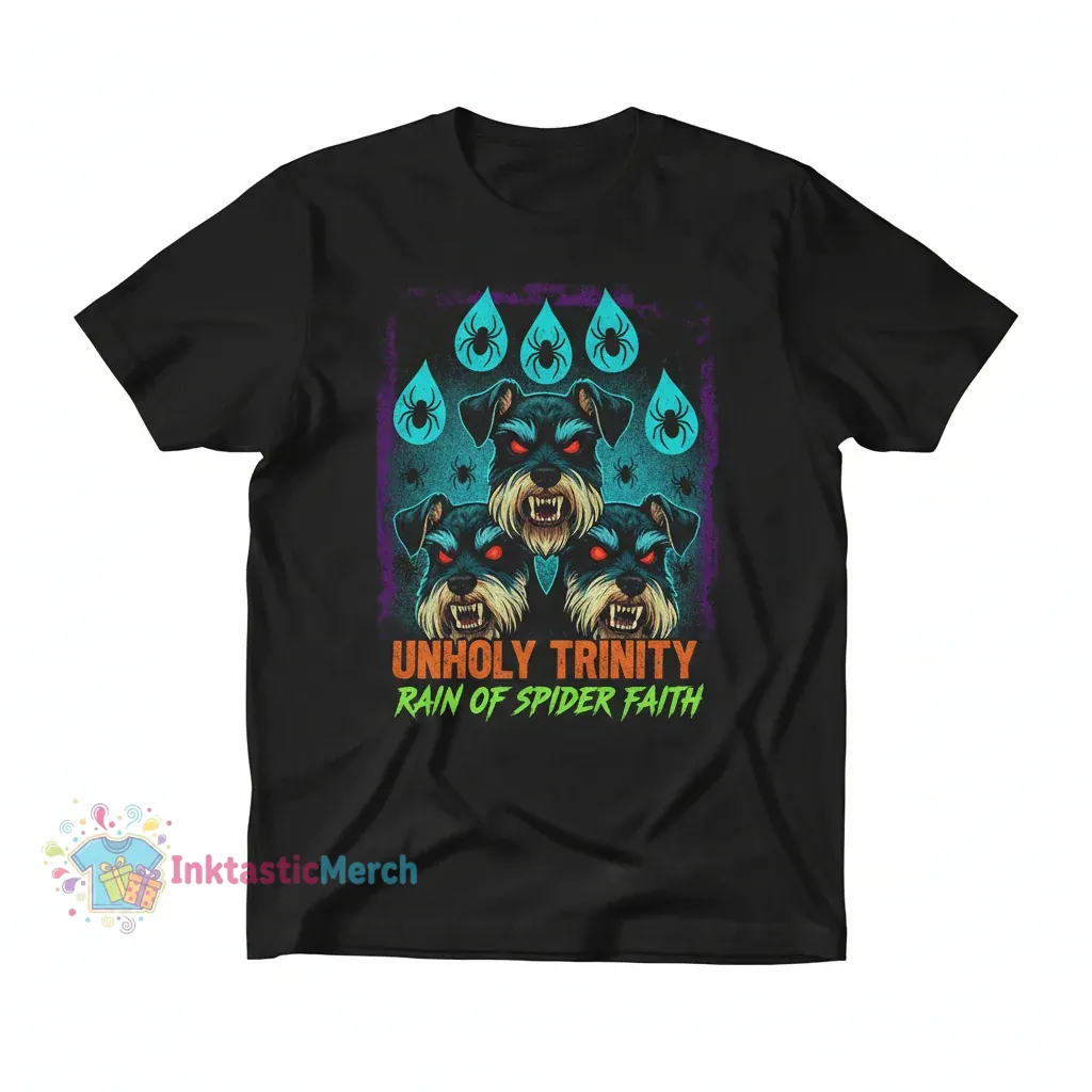 Showcase your unique style with the Rain Of Spider Faith The Unholy Trinity Schnauzer Men’s Heavyweight T-Shirt, crafted from 100% ring-spun cotton for exceptional comfort and longevity. This premium tee features an eye-catching graphic and a modern retail fit, making it a standout piece for any casual wardrobe, available from inktasticmerch.com.