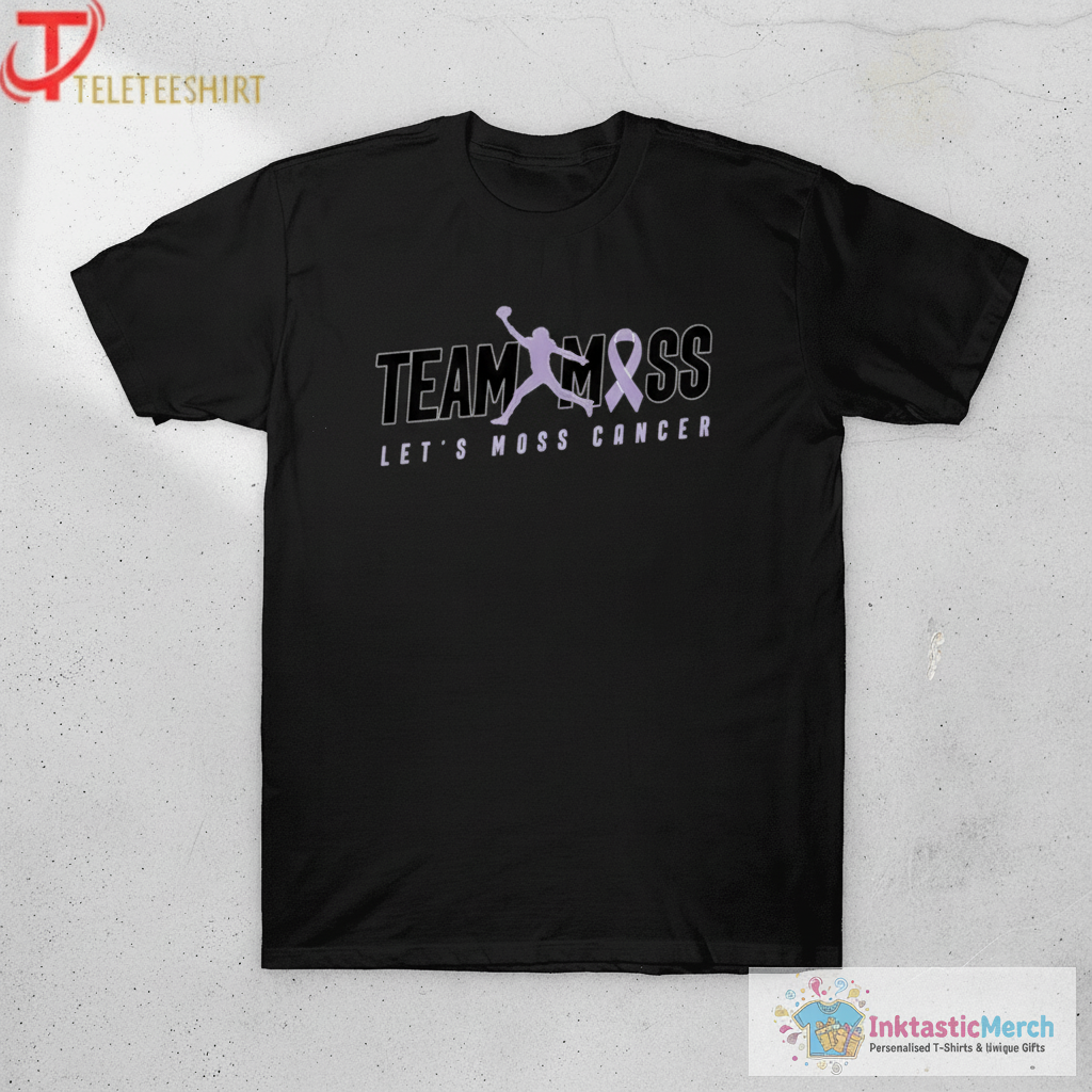 Celebrate the legendary Randy Moss and join the fight against cancer with the “Team Moss Let’s Moss Cancer” T-shirt from InktasticMerch. Crafted from an ultra-soft, premium cotton blend, this tee offers exceptional comfort and a durable print, making it a long-lasting favorite for fans and supporters alike.