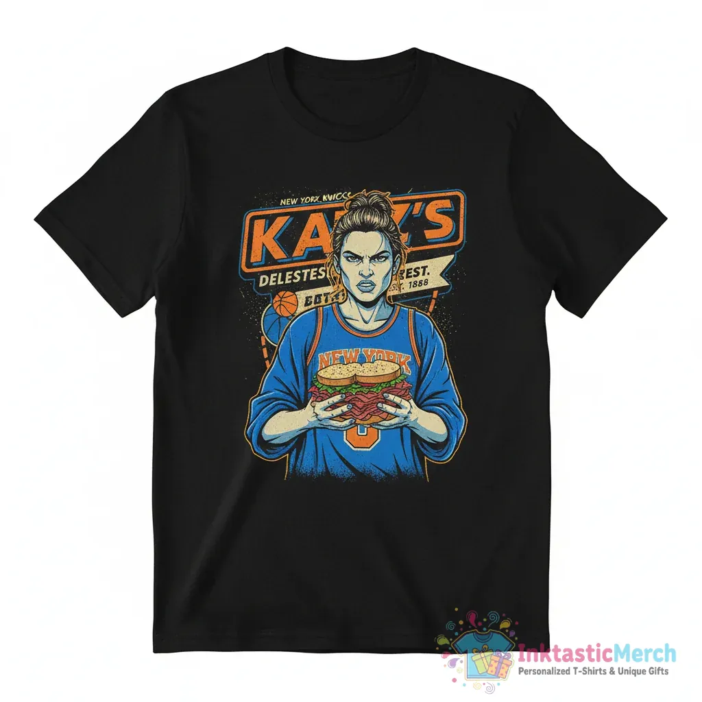 Fans of the New York Knicks, lovers of Katz’s Delicatessen, New York natives, or anyone who appreciates unique, comfortable apparel. It’s ideal for casual Fridays, weekend adventures, sporting events, or simply relaxing at home. This tee is a fantastic gift for friends and family who share a passion for NYC culture and style.