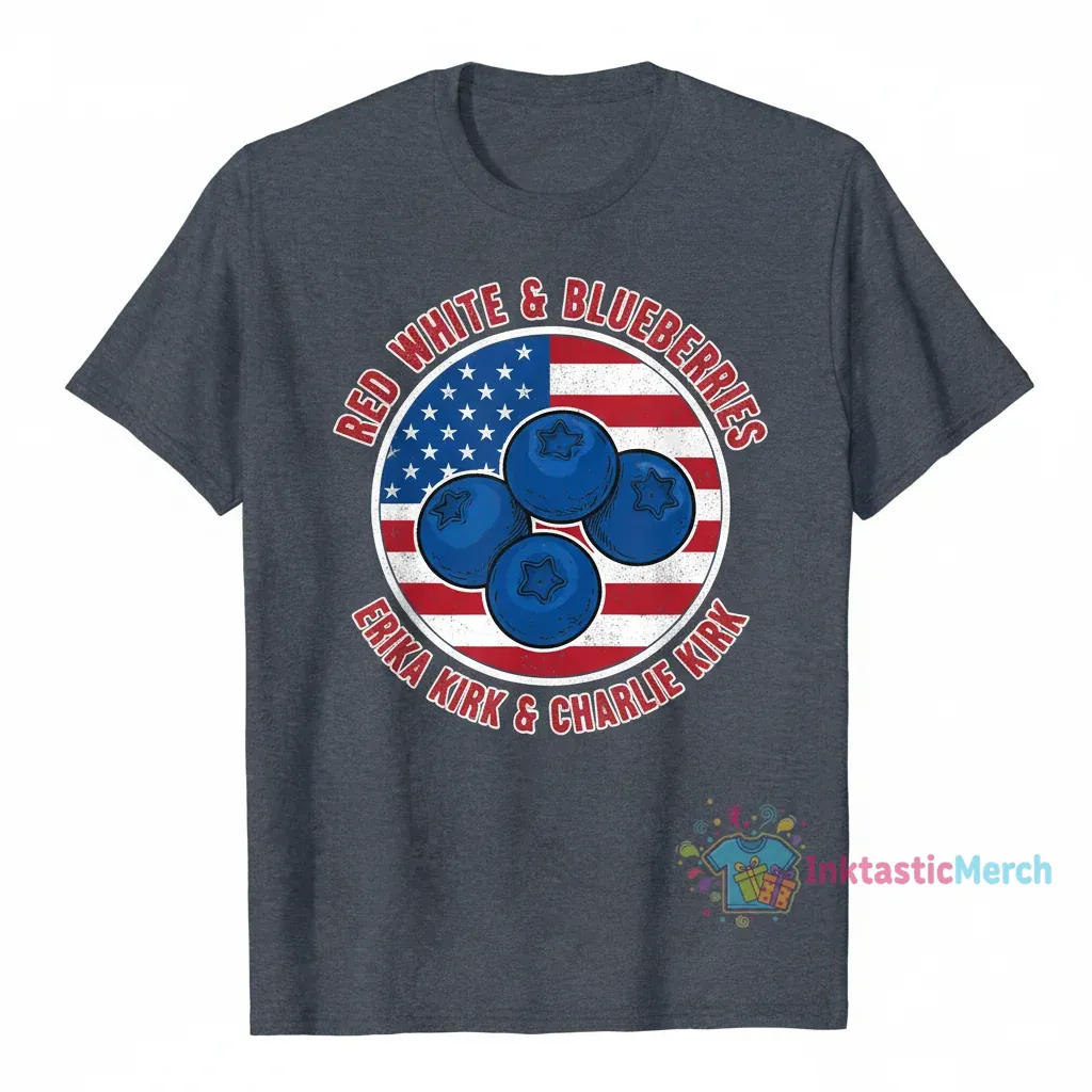 Show your patriotic spirit with the Red White and Blueberries Erika Kirk and Charlie Kirk T-Shirt from InktasticMerch. Crafted for comfort and style using premium, ultra-soft cotton, this tee offers a relaxed fit and a vibrant design perfect for expressing your American pride.