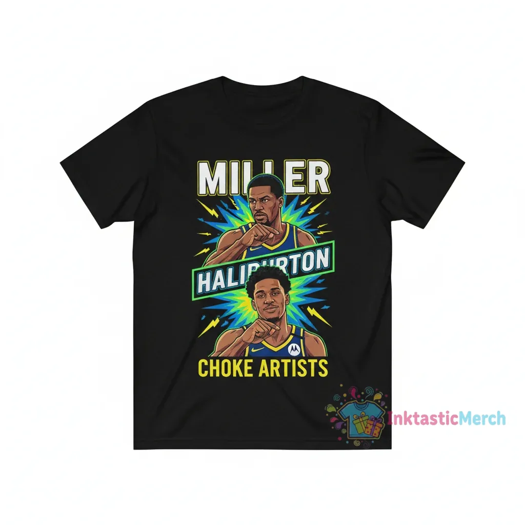 Upgrade your wardrobe with the iconic Reggie Miller & Tyrese Haliburton “Choke” T-Shirt from InktasticMerch. Crafted from 100% premium pre-shrunk cotton, this tee offers unparalleled comfort and a consistent fit wash after wash, featuring vibrant, eco-friendly inks that resist fading. This statement piece is built for every occasion, allowing you to showcase your basketball passion with enduring style.