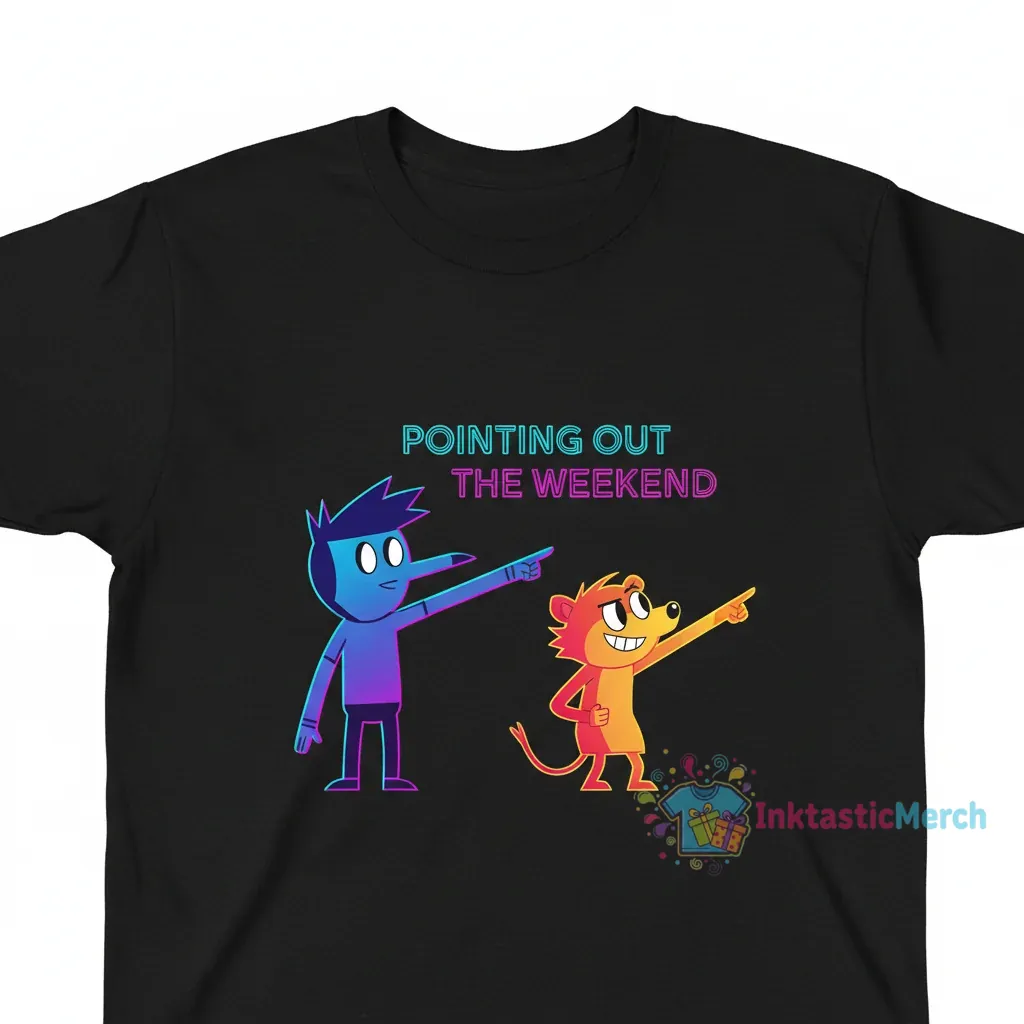 Showcase your love for the iconic animated duo with this high-quality Regular Show Mordecai and Rigby Pointing T-Shirt, crafted from 100% ring-spun cotton for an exceptionally soft feel and superior breathability. This durable tee is designed for comfort and style, making it an essential addition to any fan’s wardrobe and a testament to the quality you can find at inktasticmerch.com.