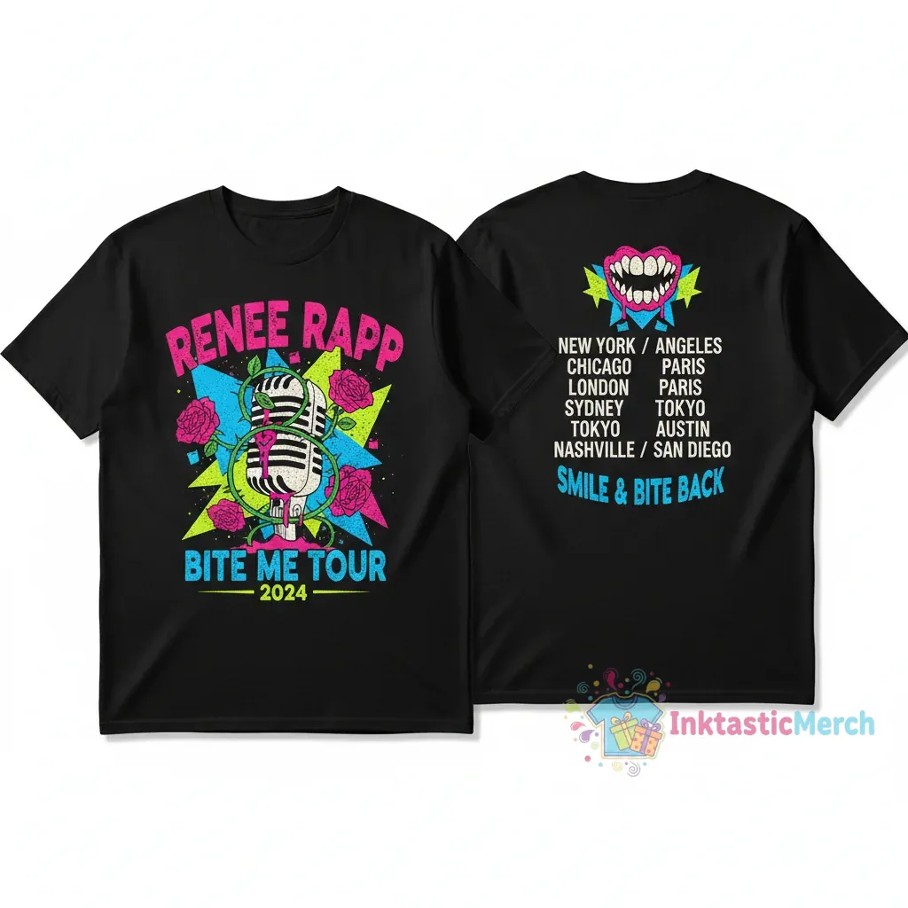 Show your love for Renee Rapp with this official “Bite Me Tour” 2-sided graphic t-shirt, crafted for comfort and style from 100% ring-spun cotton for a soft feel and excellent breathability. This premium tee features striking graphics on both sides, a modern retail fit, and durable construction, making it a fashionable statement piece from inktasticmerch.com.