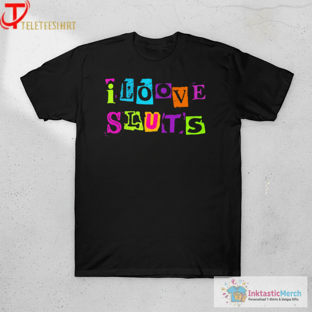 Show your love and embrace bold self-expression with the Réyvin Nychole Wearing I Love Sluts T-shirt. Crafted from the softest, high-quality fabric for ultimate comfort and lasting wear, this tee is designed to make a statement. Discover more unique designs at inktasticmerch.com.