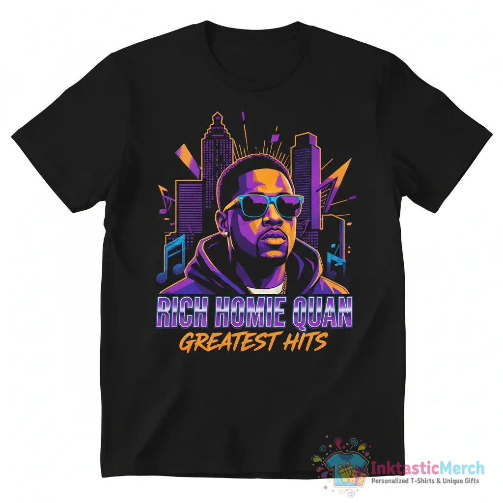 Show off your love for Atlanta hip hop with this awesome Rich Homie Quan Greatest Hits shirt from InktasticMerch. Made with premium quality materials and printed with high-quality, fade-resistant inks, this super soft tee ensures all-day comfort and lasting style. It’s the perfect addition to any hip hop fan’s wardrobe, bringing a touch of Atlanta’s vibrant music scene right to you.
