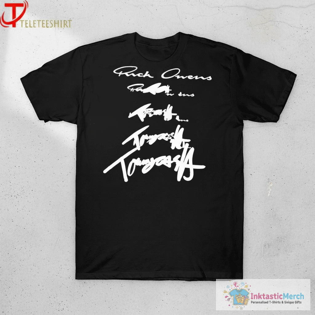 Step up your streetwear game with the exclusive Rick Owens x Tommy Cash T-shirt, a bold statement piece combining avant-garde style with unique personality. Crafted from high-quality cotton, this T-shirt offers premium comfort and a striking design that ensures you’ll stand out from the crowd, reflecting your confident style and taste for distinctive fashion available at inktasticmerch.com.