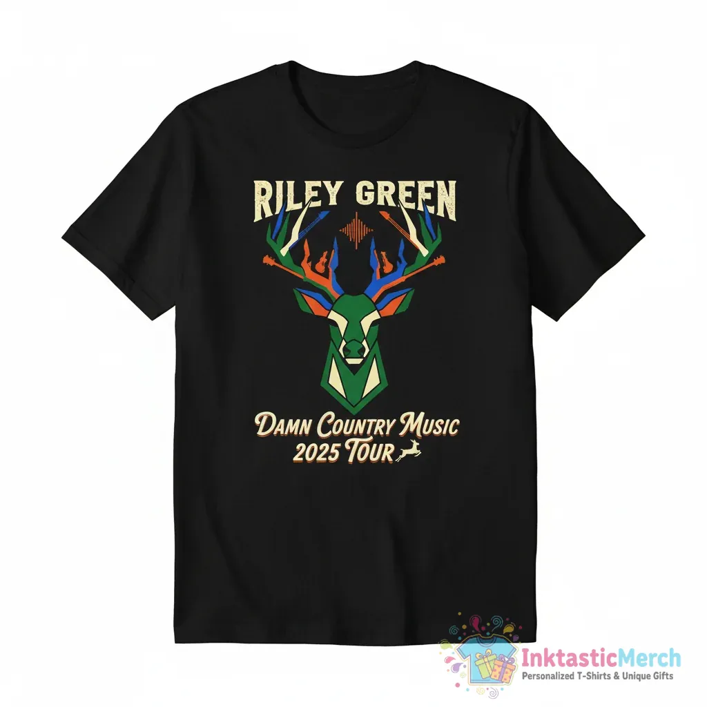 Show your love for Riley Green and country music with this exclusive Damn Country Music 2025 tour deer shirt from InktasticMerch. This premium quality tee features unique artwork capturing the spirit of the music and the outdoors, made from high-quality fabric for ultimate comfort and durability, making it a must-have for concert-goers and fans.