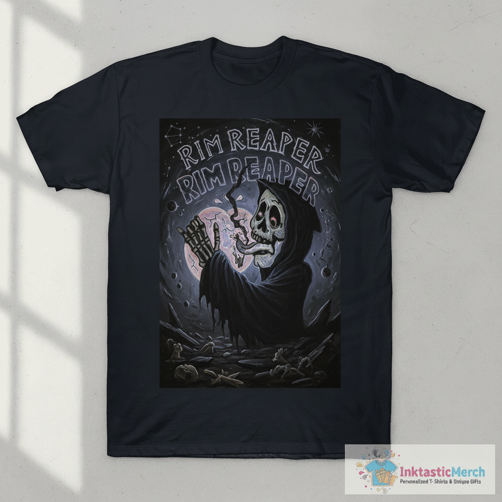 Unleash your dark side with the striking Rim Reaper T-Shirt from InktasticMerch. This tee offers superior comfort and durability with its ultra-soft fabric and premium quality, ensuring the bold Grim Reaper graphic stands out and lasts wash after wash. Perfect for expressing your unique style and embracing a bit of mystery.