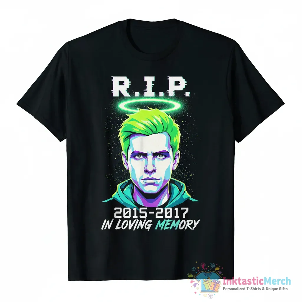 Show your enduring love for Jacksepticeye with this RIP Green Hair tribute shirt, featuring a touching memorial photo from 2015-2017. Crafted from ultra-soft, premium quality fabric for maximum comfort and durability, this tee is a stylish way to honor the creator’s iconic green hair era. Explore more unique fan apparel at InktasticMerch.