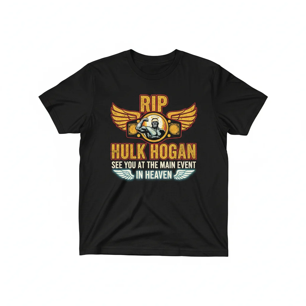 Show your respect and love for a wrestling legend with the RIP Hulk Hogan “See You At The Main Event In Heaven” T-Shirt from InktasticMerch. This t-shirt offers a comfortable and stylish way to honor Hulk Hogan, designed for everyday wear with its incredibly soft, high-quality fabric that ensures it holds up wash after wash. Its classic design and meaningful message make it a standout piece that sparks conversation and connection with other fans.