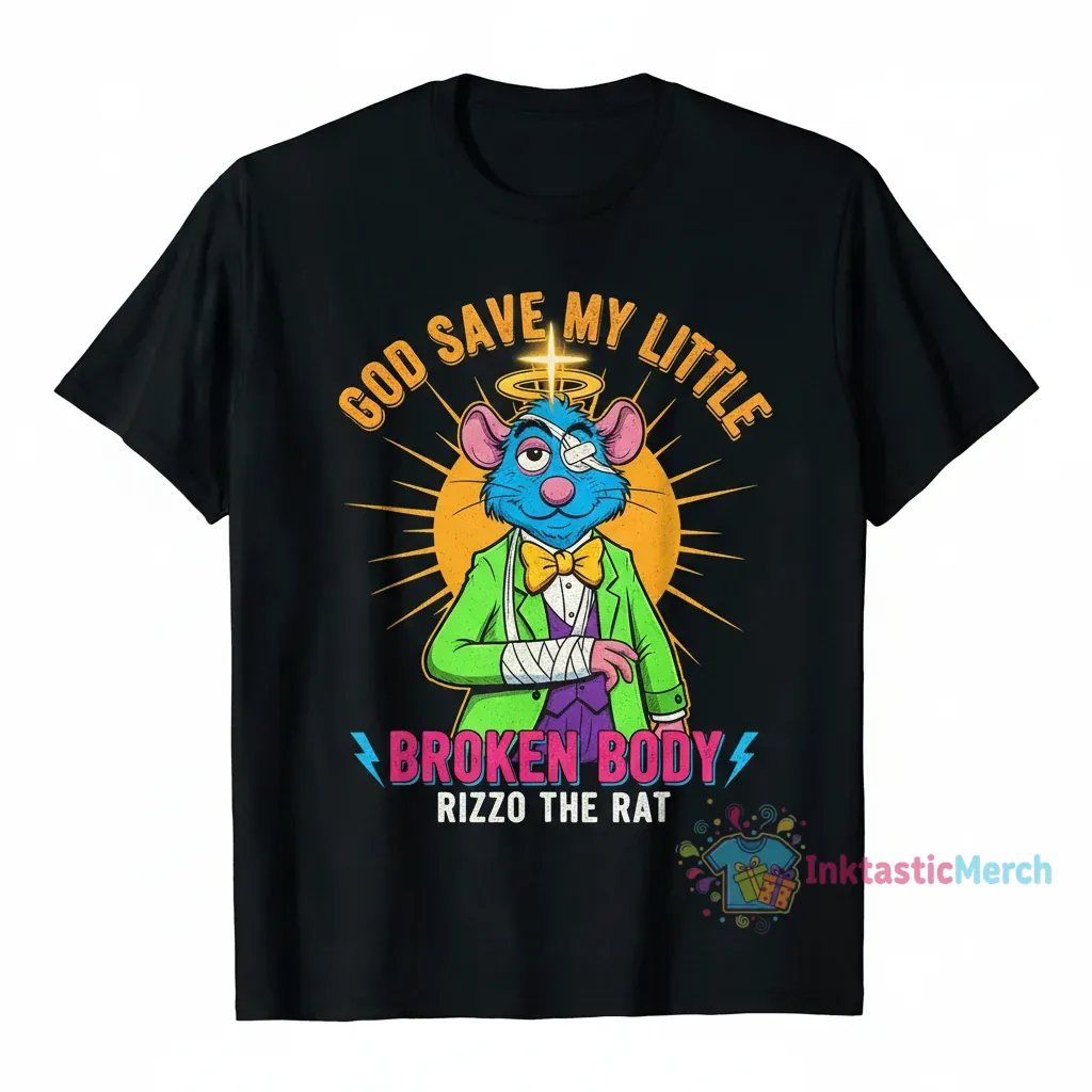 Tired of t-shirts that fade? Introducing the Rizzo the Rat Muppets “God Save My Little Broken Body” T-Shirt from inktasticmerch.com, crafted from 100% premium, pre-shrunk cotton and vibrant, eco-friendly inks for lasting quality and effortless cool.