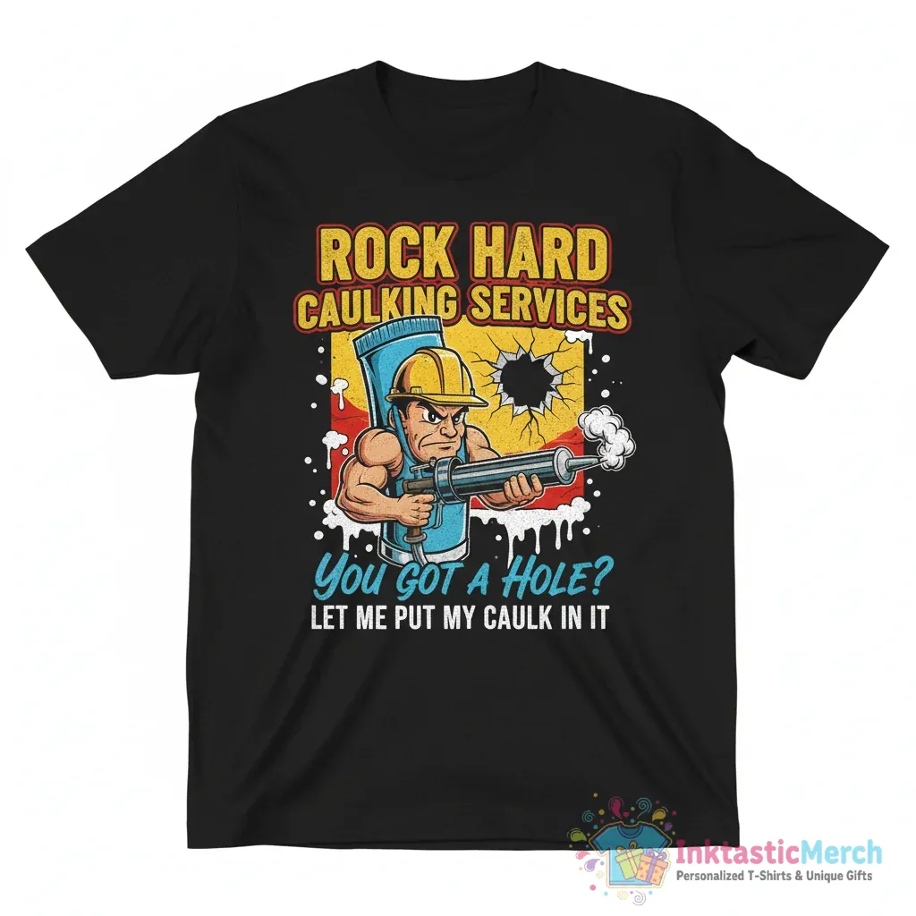 Get ready to make a statement with the “Rock Hard Caulking Services You Got a Hole Let Me Put My Caulk In It” T-shirt! This tee isn’t just a shirt; it’s a conversation starter. Featuring bold, eye-catching artwork, it’s designed for those who appreciate a bit of cheeky humor and stand-out style. Crafted from premium quality fabric, this t-shirt offers an exceptional feel and durability, making it a go-to choice for everyday wear. Its comfortable fit ensures you’ll feel as good as you look, no matter where your day takes you.