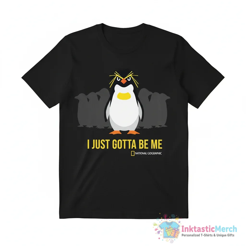Celebrate your unique spirit with the “Rockhopper Penguin I Just Gotta Be Me” National Geographic shirt from InktasticMerch. Crafted from an ultra-soft, premium cotton blend, this tee offers superior comfort for everyday wear. The durable, high-quality print ensures your authentic self is showcased wash after wash, making it a lasting statement piece for nature lovers.