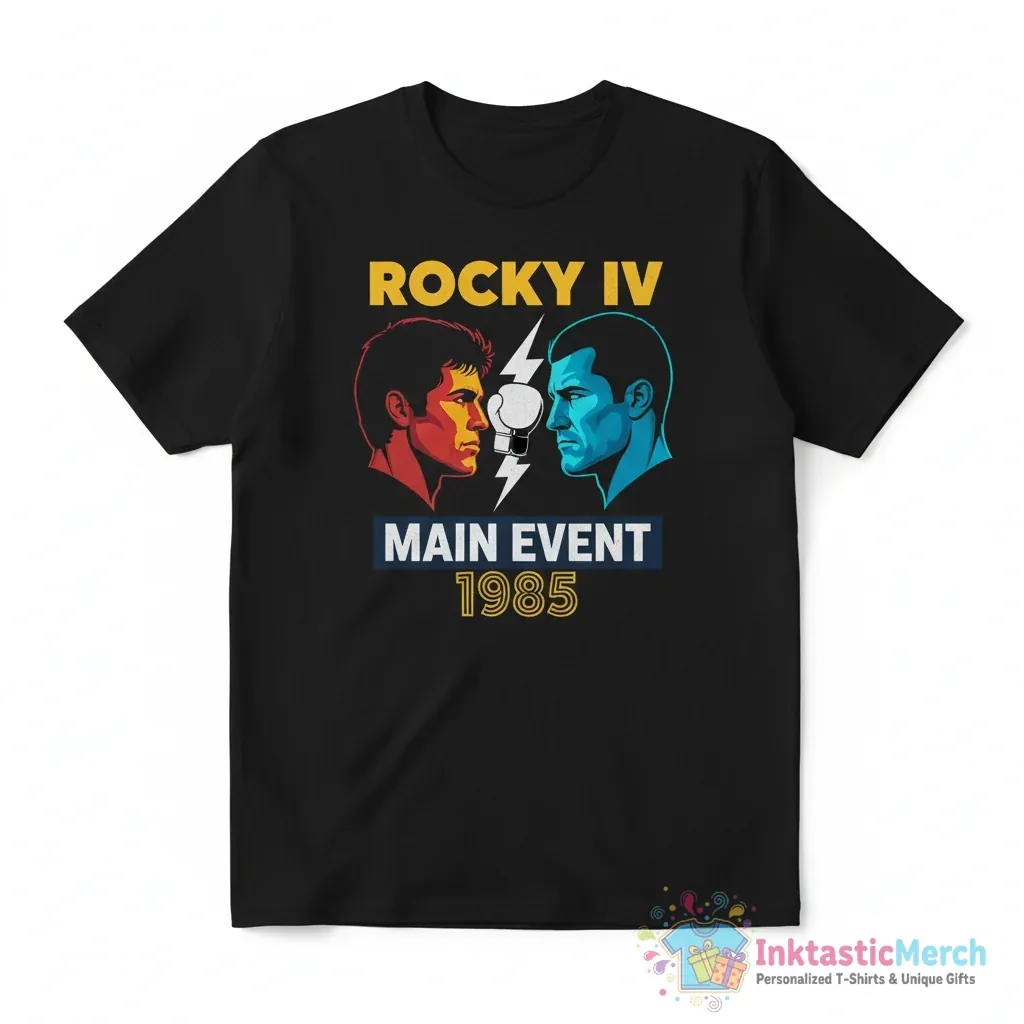 Showcase your love for an iconic cinematic showdown with the Rocky Balboa vs Ivan Drago Rocky IV movie main event 1985 shirt, a piece of movie history you can wear. Experience ultimate comfort and style with this premium quality t-shirt, designed for everyday wear and crafted from high-quality, durable fabric. You can find more great apparel at inktasticmerch.com.