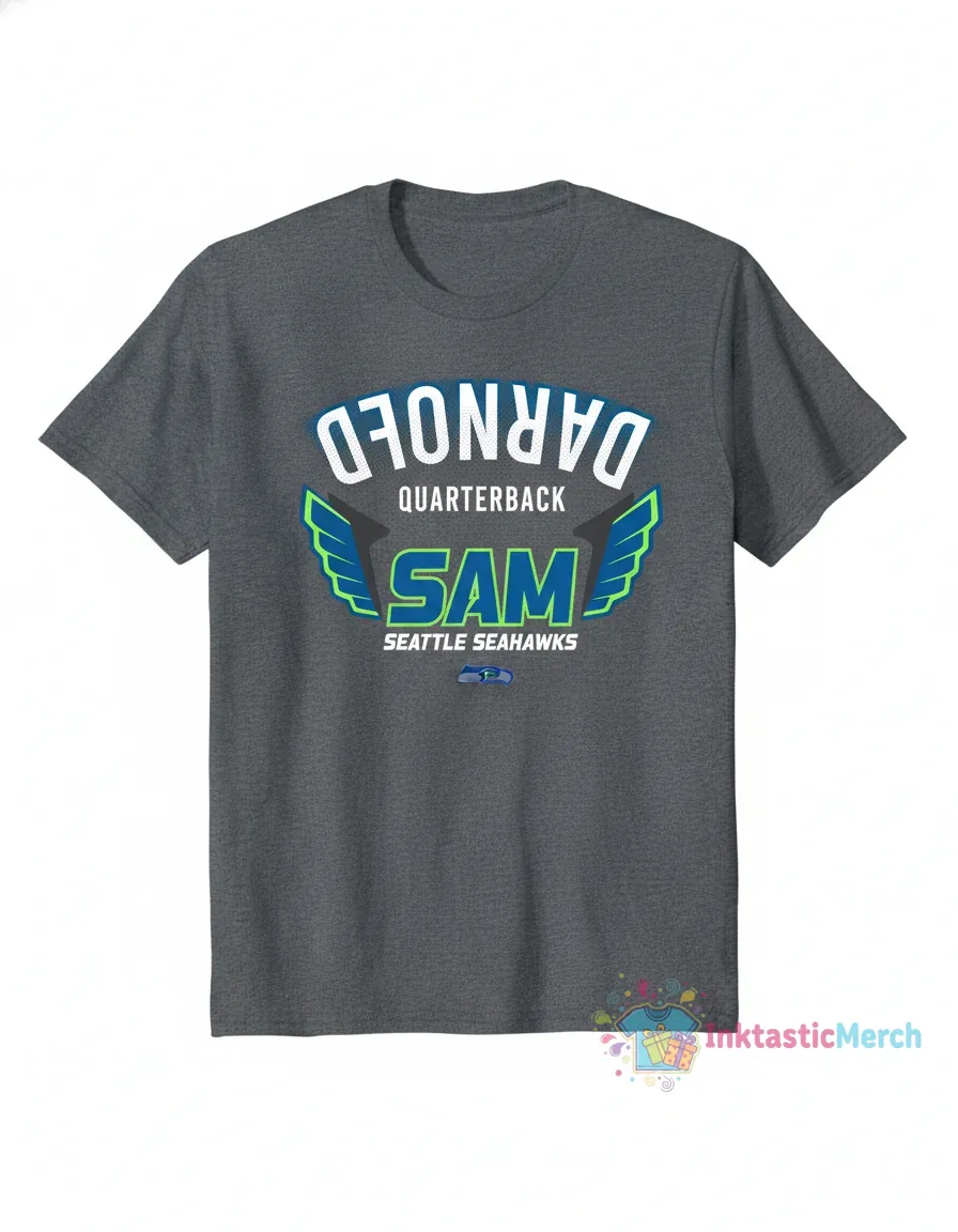 Show your unwavering support for the Seattle Seahawks and quarterback Sam Darnold with this iconic Player Name Invert T-Shirt from InktasticMerch. Crafted with meticulous attention to detail using premium, pre-shrunk fabric, this shirt is built to last and remains a staple for seasons to come, offering unparalleled comfort and a flattering unisex fit.