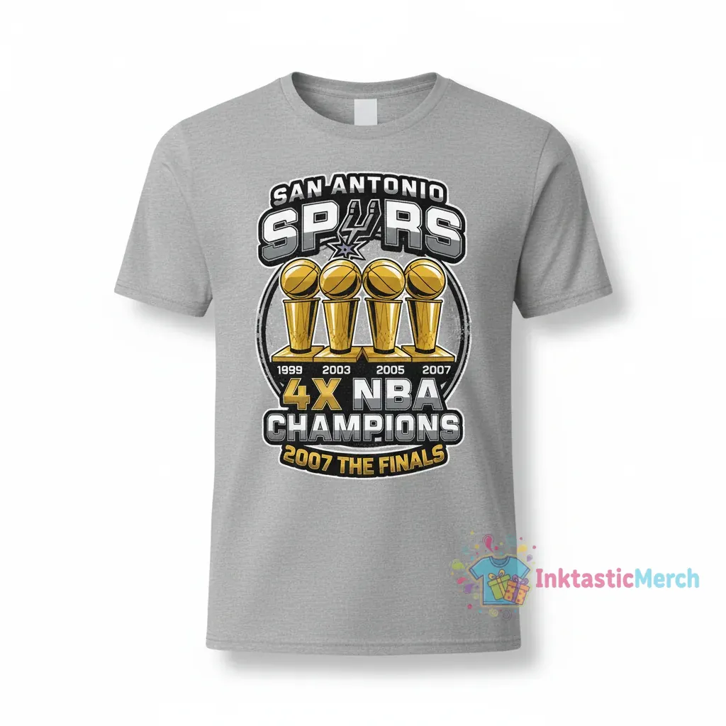 Celebrate the San Antonio Spurs’ 2007 NBA Championship with this premium quality t-shirt, crafted for lasting comfort and durability. Showcasing an eye-catching graphic of their fourth championship win, this tee is made from soft, breathable material perfect for all-day wear, making it a must-have for any dedicated fan. You can find more great gear at inktasticmerch.com.