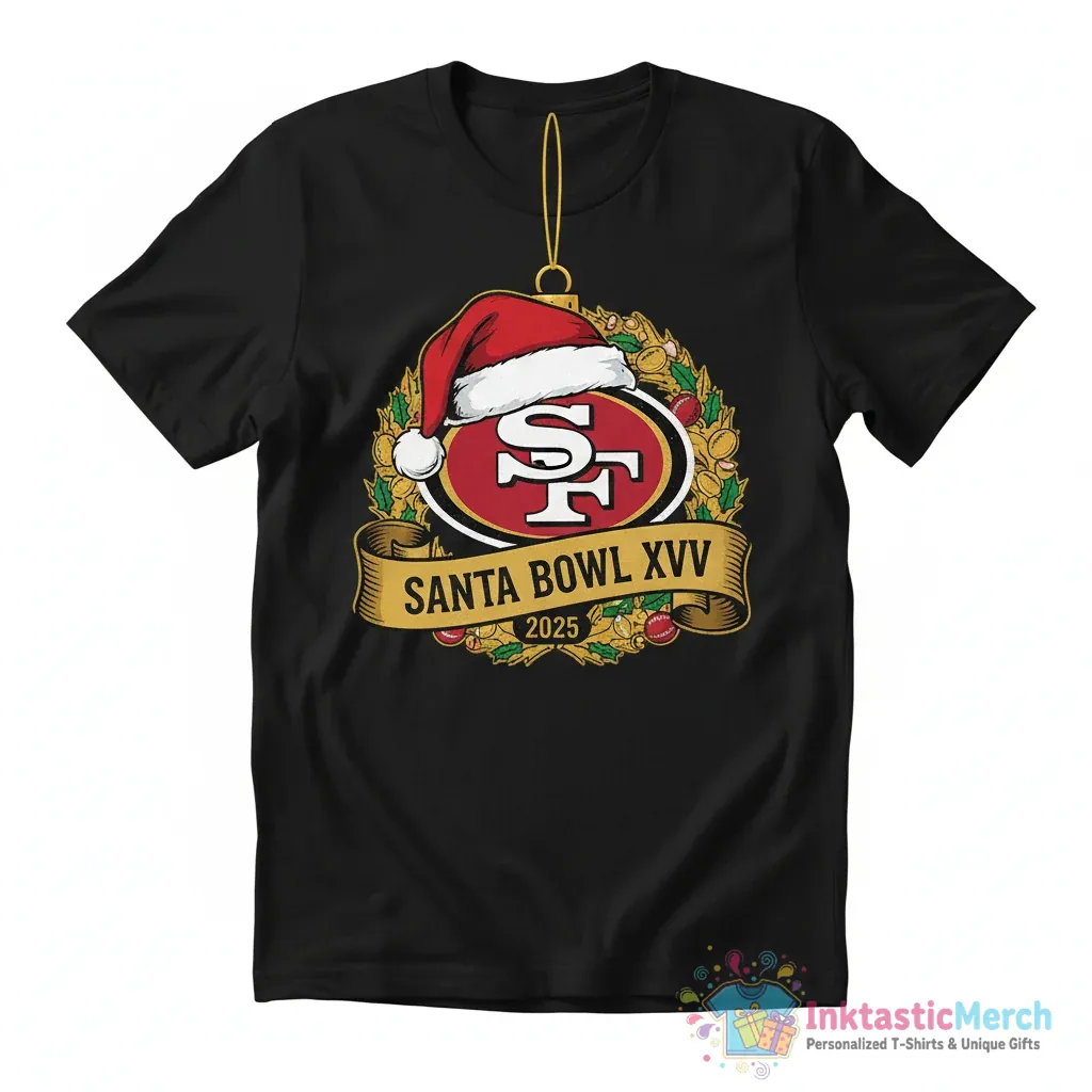 Show your team spirit with the festive San Francisco 49ers Santa Hat Logo Ornament. This premium quality ornament, available at inktasticmerch.com, is crafted with attention to detail for lasting appeal, making it a must-have for any dedicated fan to add 49ers pride to holiday decorations.