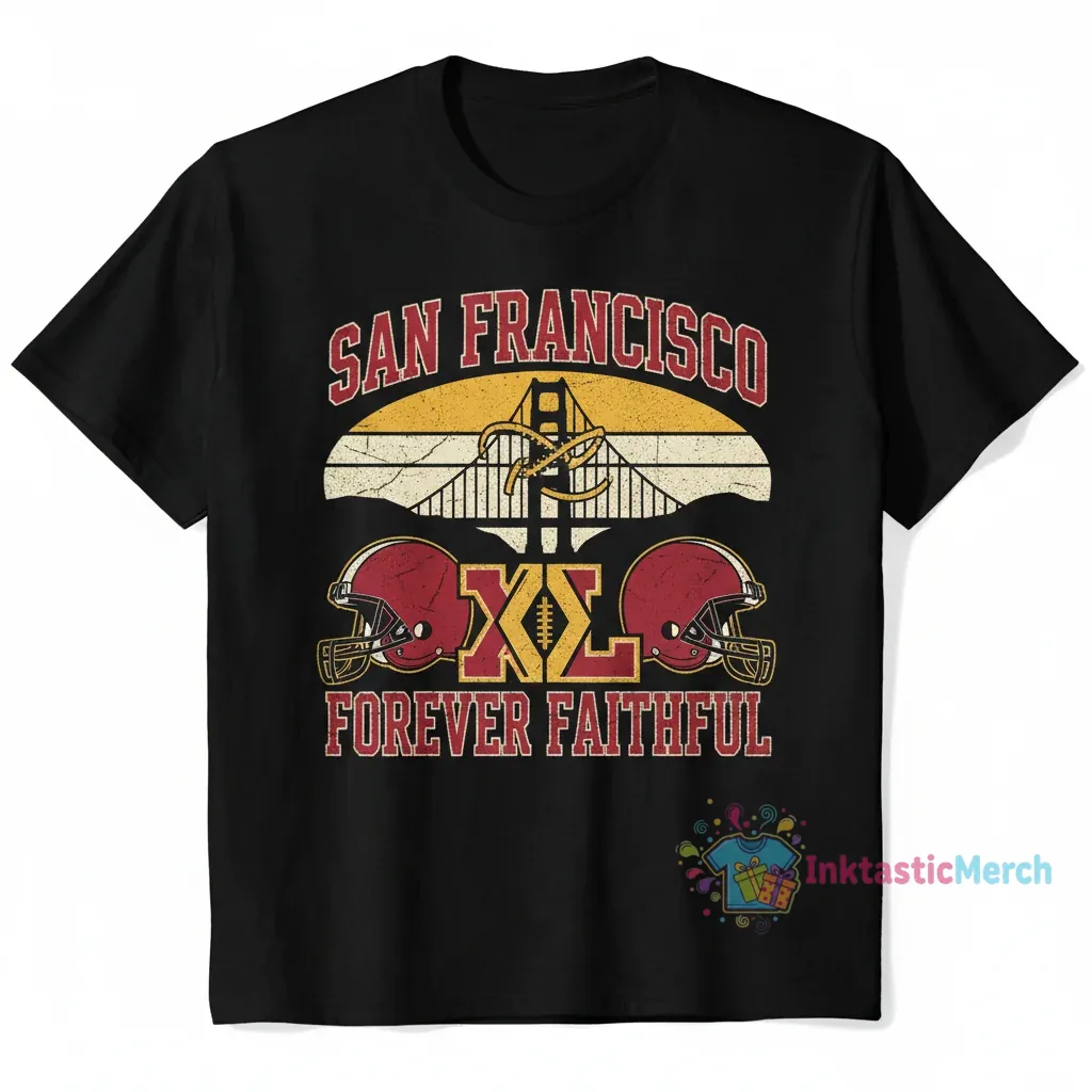 Show your unwavering support for the San Francisco 49ers with the ‘Forever Faithful’ T-shirt. This tee is designed for every die-hard fan who bleeds gold and red. Whether you’re heading to the stadium, watching the game with friends, or just representing your team every day, this shirt lets everyone know where your loyalty lies. Celebrate the rich history and the enduring spirit of the 49ers with this essential piece of fan gear.