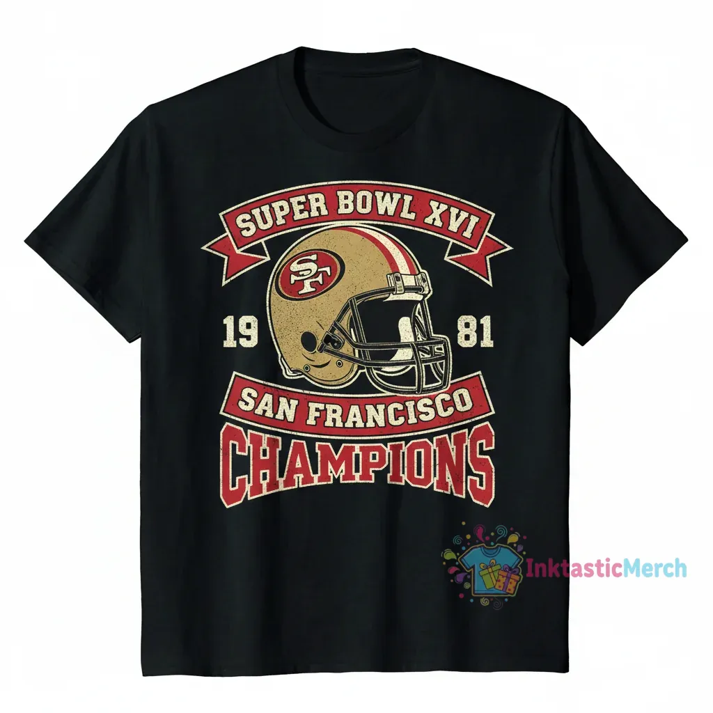 Celebrate the legendary spirit of the San Francisco 49ers’ Super Bowl XVI victory with this wearable art, inspired by the iconic champions helmet and the era of dominance it represents. Experience unparalleled softness and breathable comfort designed for your daily journey, a testament to the perseverance, skill, and joy of achieving greatness, brought to you by InktasticMerch.
