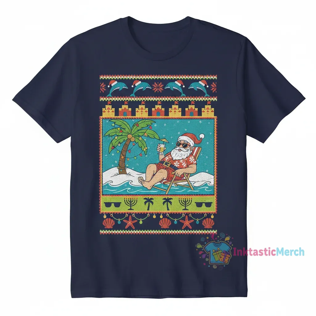 Embrace the holiday season with a tropical twist in our Santa Claus Beach Ugly Christmas Sweater from inktasticmerch.com. This unique, ultra-soft, and comfortable tee features vibrant Santa Claus beach artwork, designed for those who love to stand out and celebrate the holidays in their own fun way. Crafted from durable, high-quality material, it’s perfect for making a statement at any festive gathering.