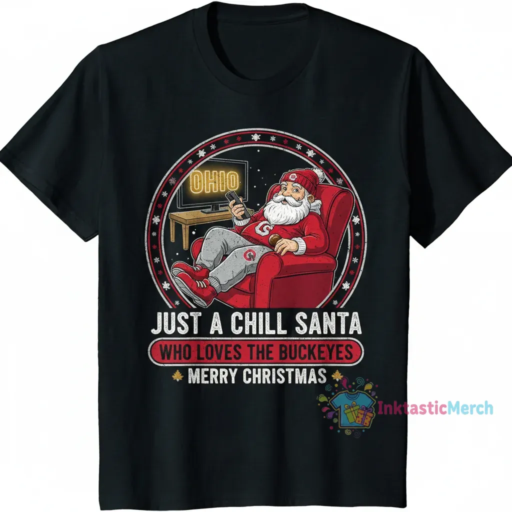 Experience the ultimate comfort with this premium tee from InktasticMerch, featuring original artwork that blends relaxed holiday cheer with unwavering Ohio State Buckeyes pride. Crafted for buttery softness and durable wear, this shirt is designed to be your favorite from the first wear, perfect for festive gatherings or cozy days.