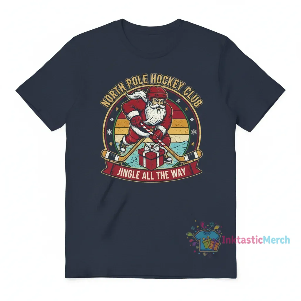 Embrace the festive spirit with the Santa’s North Pole Hockey Club: Jingle All The Way Tee from InktasticMerch. Crafted from a premium, ultra-soft cotton blend, this tee offers unmatched comfort and a relaxed, unisex fit for effortless styling. Its durable print stays vibrant wash after wash, making it a perfect statement piece for those who play by their own rules.