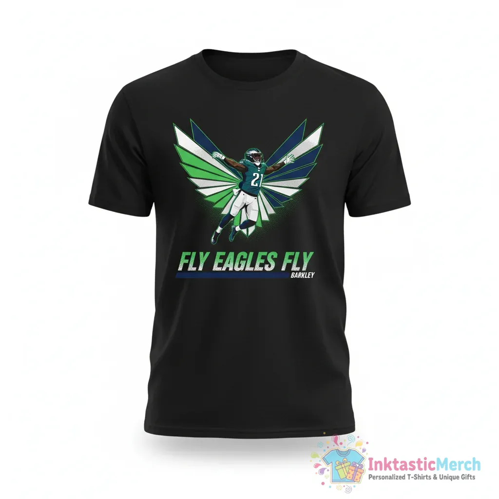 Feel the pride of Philadelphia with every wear. This shirt celebrates Saquon Barkley’s electrifying presence on the field, capturing that “jump fly eagles fly” energy. It’s designed for true fans who appreciate quality and style. The soft fabric feels great against your skin, making it your new go-to for showing off your Eagles loyalty. Whether you’re at the stadium or watching from home, this tee connects you to the game and the passionate Eagles community.