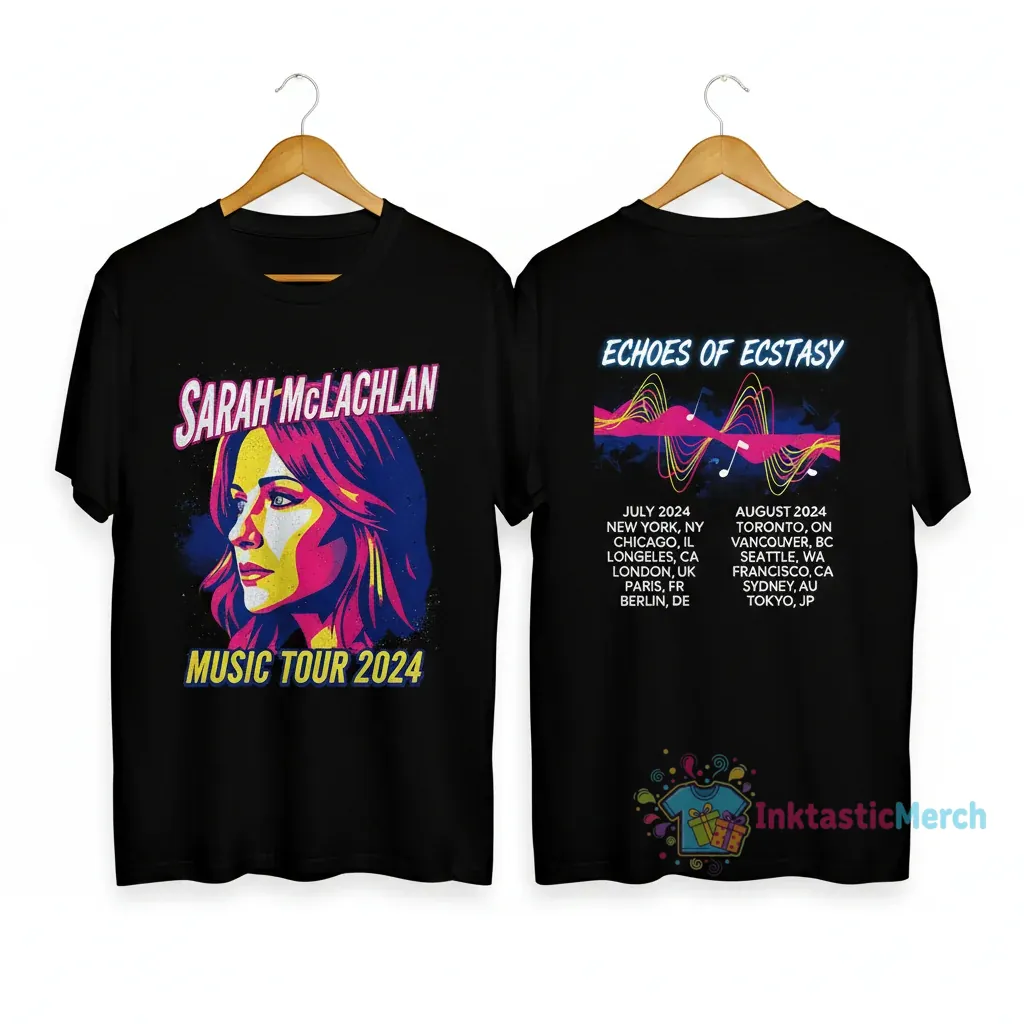 This t-shirt features a design inspired by the unforgettable melodies and powerful voice of Sarah McLachlan. The artwork evokes a sense of soulful expression and artistic depth, mirroring the emotional journey her music takes listeners on. It’s more than just a graphic; it’s a visual representation of the connection fans feel with her performances, a way to carry the magic of the 2024 tour with you long after the final encore. The design aims to resonate with the thoughtful, artistic spirit that defines Sarah McLachlan’s legacy, offering a piece that speaks to the heart.