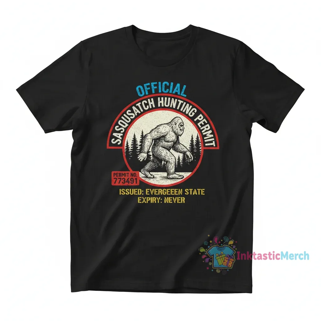 - Unique “Sasquatch Hunting Permit” graphic artwork