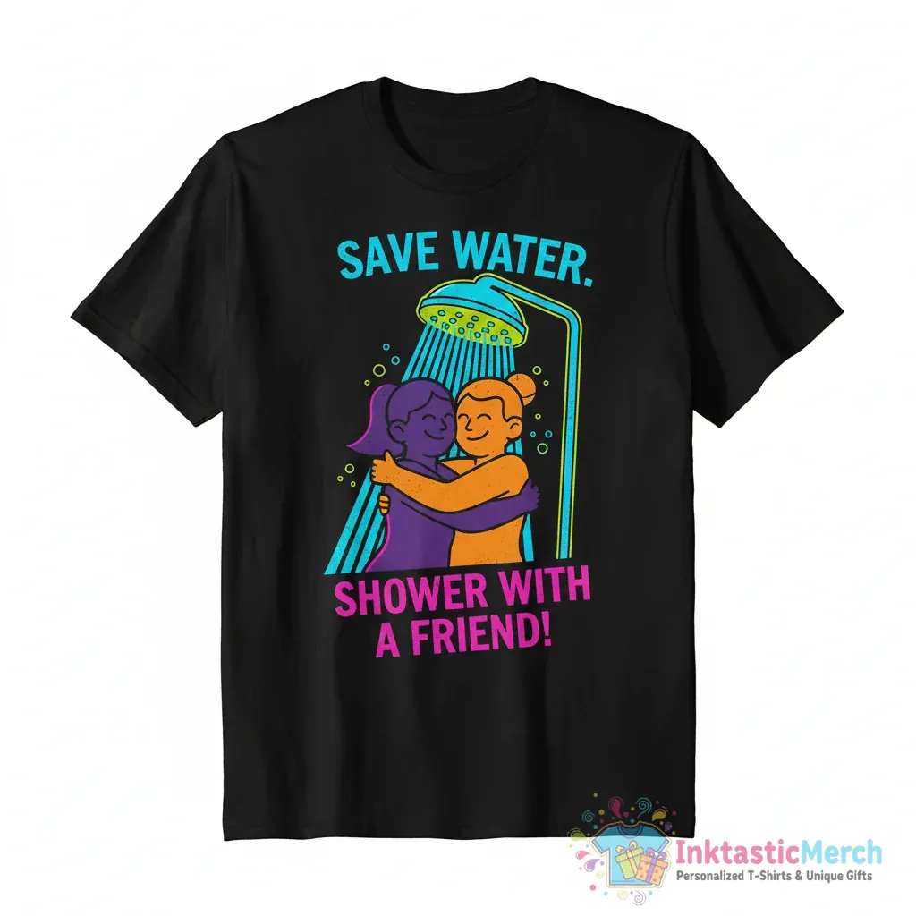 Make a statement and embrace a fun, eco-conscious vibe with the Save Water Shower with a Friend T-Shirt. This unique tee isn’t just a piece of clothing; it’s a conversation starter that brings a playful message to your everyday style. Crafted for ultimate comfort and designed to turn heads, this shirt is perfect for anyone who loves to express themselves with a touch of humor and a nod to sustainable living. Whether you’re lounging at home or out with friends, this t-shirt guarantees you’ll feel as good as you look.
