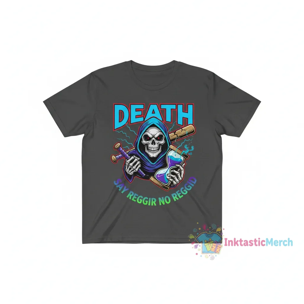 Embrace a unique and bold statement with the “Say Reggin Backwards Death” t-shirt. This tee features striking artwork that’s sure to turn heads and spark conversations. Crafted for ultimate comfort and lasting quality, it’s the perfect addition to any wardrobe. Whether you’re out with friends or just chilling at home, this shirt offers a cool, laid-back vibe that matches your personal style. Get ready to express yourself with this must-have piece.
