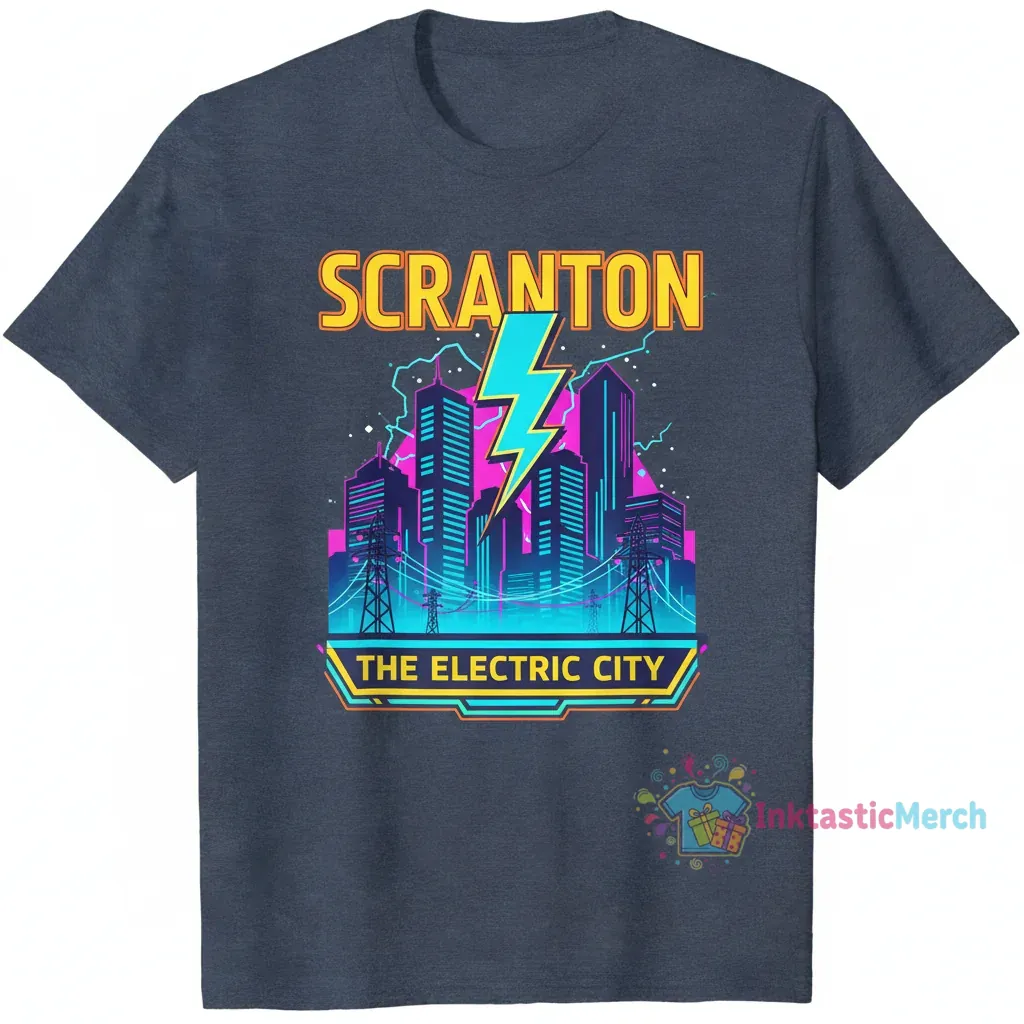 Own a piece of iconic cool with the Scranton Electric City graphic tee from InktasticMerch, crafted from premium, ultra-soft cotton for unmatched comfort and a luxurious feel. This tee offers a bold ‘Scranton The Electric City’ graphic print and durable construction designed for everyday wear, embodying the authentic style of Scranton and showcasing the brand’s commitment to quality apparel.